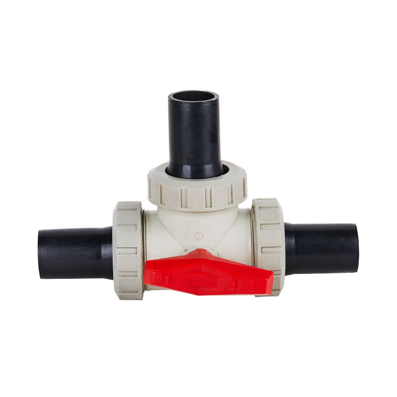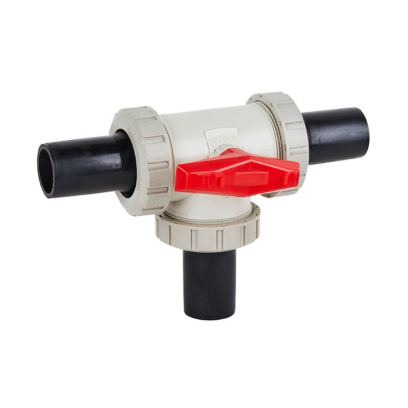 2. PPH এবং PE বাট-জোড়া থ্রি-ওয়ে বল ভালভের জন্য PTFE সীট নিবিড়তায় সামঞ্জস্যযোগ্য।