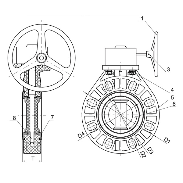 PVDF ওয়ার্ম গিয়ার বাটারফ্লাই ভালভনুয়াল কেন্দ্র সিল করা নরম সীল DN40-1000 শিল্প এবং আবাসিক প্লাস্টিক লিভার হ্যান্ডেলভ ভাল ANSI কোয়ার্টন্ডার্ড