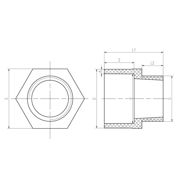 পিভিসি-সি পুরুষ থ্রিএন অ্যাডাপ্টার ডি15-50 গিগাবাইট স্ট্যান্ডার্ড