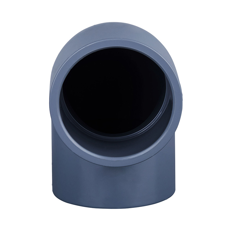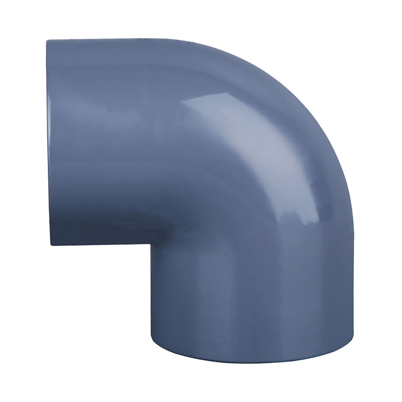 রাসায়নিক এবং জল শিল্পের জন্য উচ্চ কুল ধূসর PVC-C 90° কনুই আকৃতির DN15-DN600 1.0-1.6 MPa চাপের প্লাস্টিকের পাইপ ফিটিং