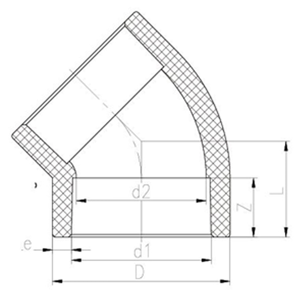 পিপিএইচ হট মেল্ট সকেট 45° কনুই DN15-100 গিগাবাইট