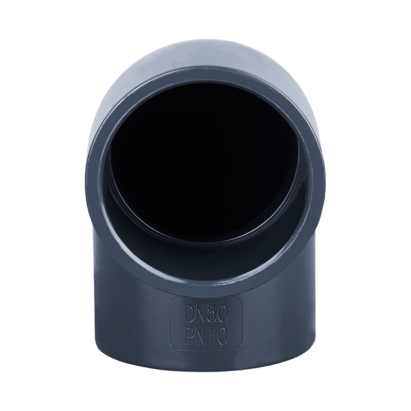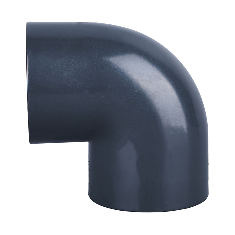 উচ্চ-কুল গাঢ় ধূসর PVC-U 90° কনুই, সমান, DN15-DN600, 1.0-1.6MPa রাসায়নিক এবং জলের জন্য চাপ, প্লাস্টিক পাইপ ফিটিং, ANSI SCH80