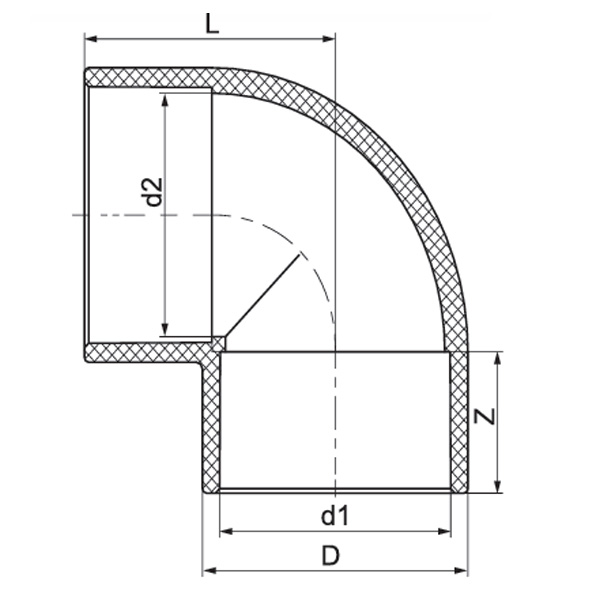 PVC-U 90° কনুই DN15-600 1/2"-24" ANSI