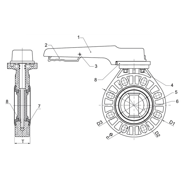 PPH D71X-10S হ্যান্ডেল বাটারফ্লাই ভালভ DN40-200 1-1/2"-8" ANSI